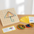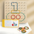 Kolorowe karty z wzorami i elastyczne gumki zachęcają dziecko do tworzenia coraz to nowych kształtów. Każdy obrazek to nowe wyzwanie, które pobudza wyobraźnię i uczy cierpliwości.