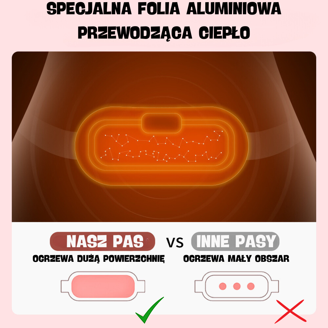 Nasz pas rozgrzewający został zaprojektowany nie tylko z myślą o SZYBKIEJ I SKUTECZNEJ REDUKCJI BÓLU MENSTRUACYJNEGO, a także bólu pleców.